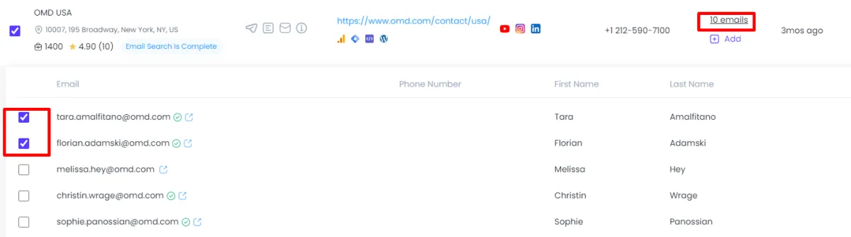 Select your desired number of emails (e.g., 1, 2, or more) based on the accounts you have selected.