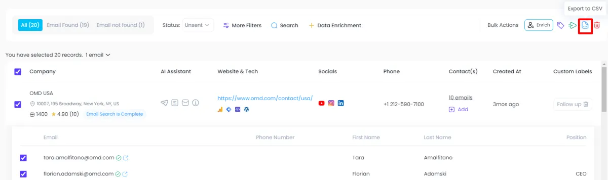 This is a step-by-step guide to exporting filtered lead data to your CRM or saving it as a CSV file for further use.