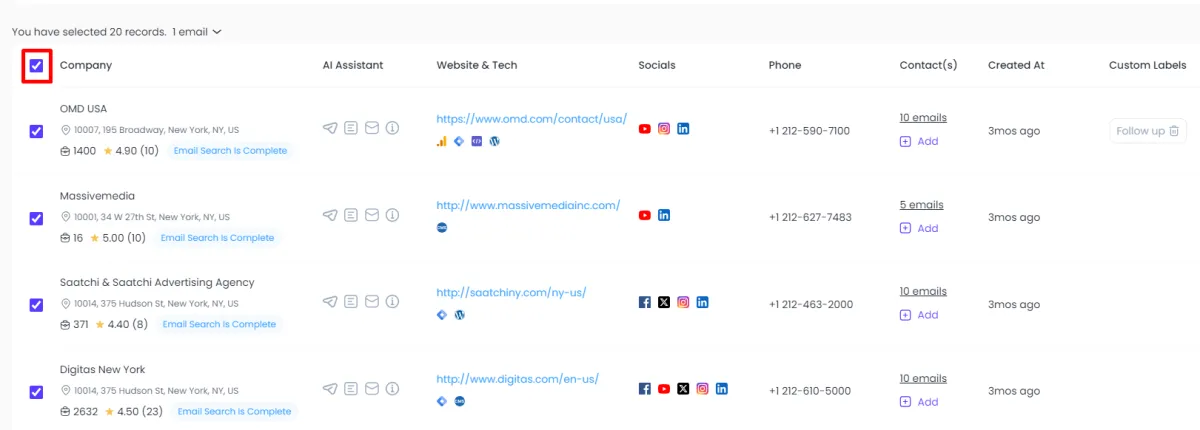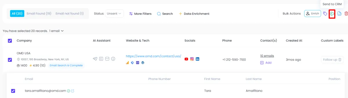 Confirm that the records have been successfully exported to your CRM or saved as a CSV file by checking the respective destination.